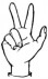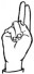 На ћирилици написано ВАЊА РУСИЋ састоји се из 9 слова [?]. Исписано ћириличном једноручном азбуком за глувонеме: